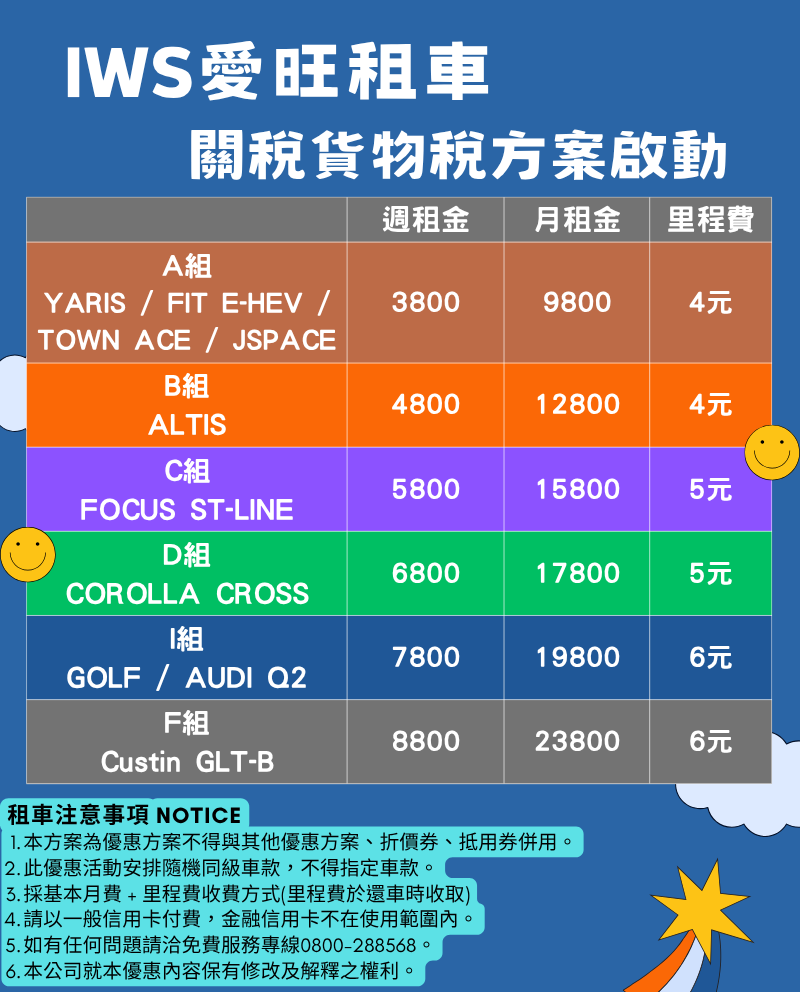此方案租金不含任何服務里程,需另計收費。